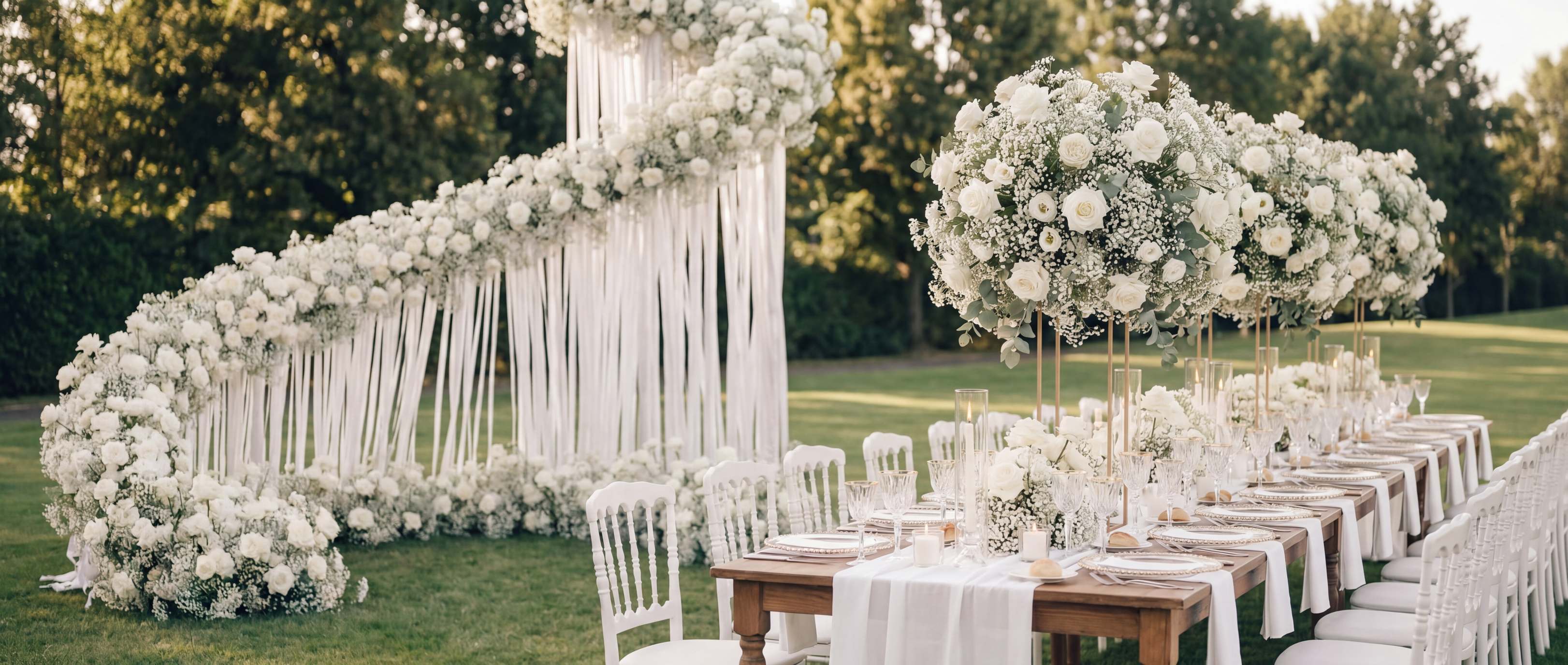 THIS IS STUNNING IN PERSON! These flowers are great quality and look very realistic in photos and in person. It is grand in size and the flowers are very full. It arrived damaged free with a very good frame. It is easy to put together and makes a huge statement for wedding and events.