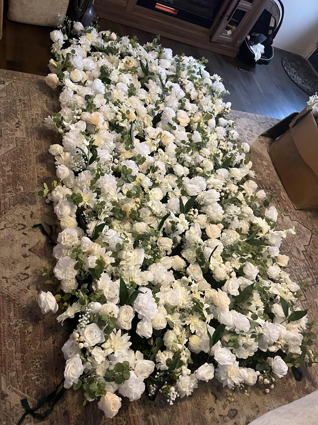 Roseytime 5D Artificial White&Green Flower Wall Roll Up Fabric Back RTW034